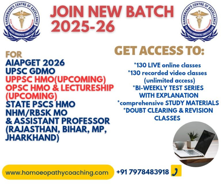 JOIN OUR HOMOEOPATHY ONLINE TEST SERIES TODAY and PREPARE YOURSELF FOR AIAPGT, UPSC, OPSC HMO like STATE PSC EXAMS. OUR ONLINE MOCK TEST SERIES IS PREPARED BY THE EXPERT FACULTIES. GET YOUR STUDY MATERIALS FOR EVERY SUBJECTS ( OPSC HMO & AIAPGET BASED).TEST STARTS FROM 31st October 2021 EVERY SATURDAY & SUNDAY.